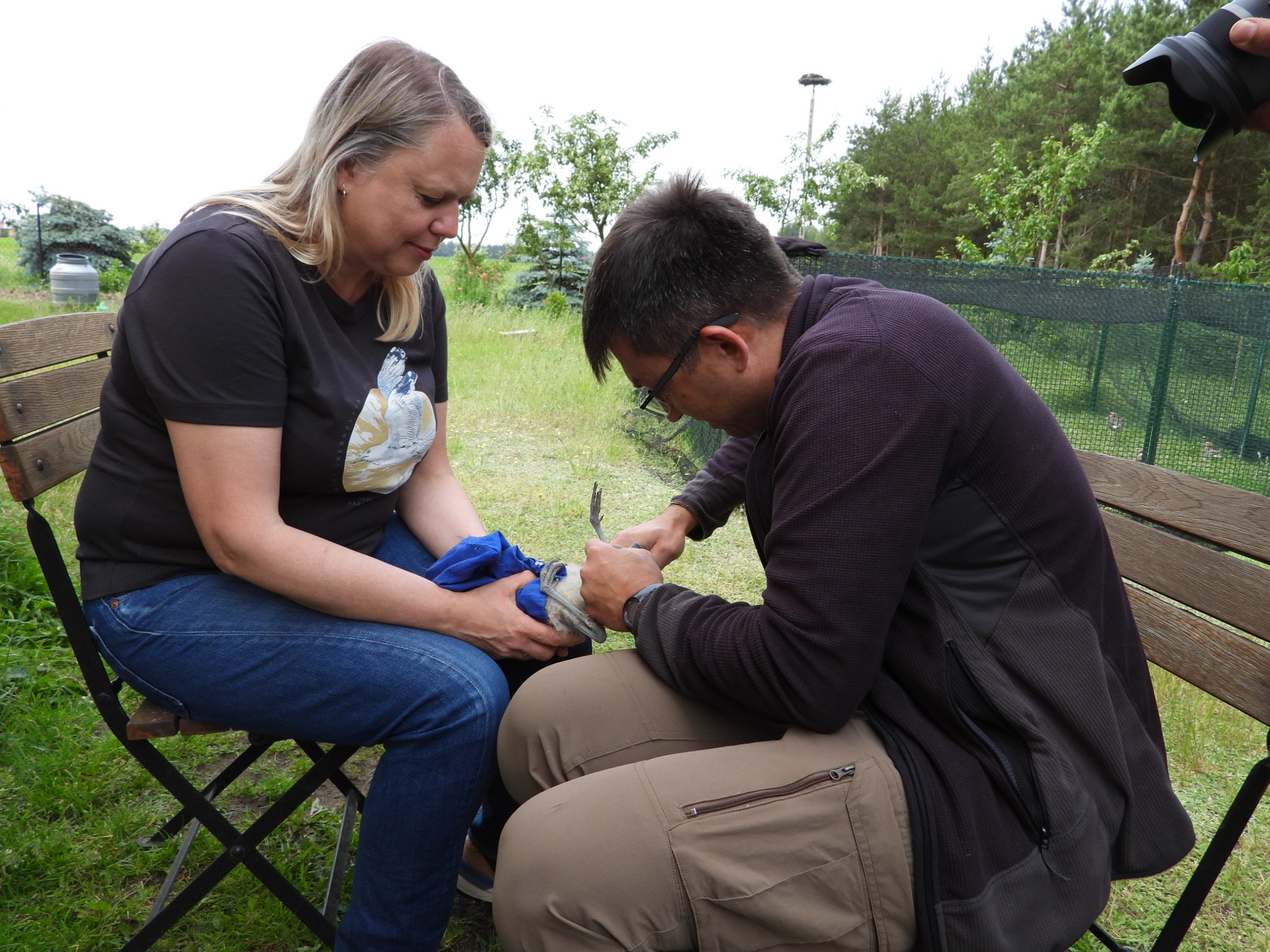 Na wolność wypuściliśmy 107 lotnych młodych! Przed wypuszczeniem ptaki zostały zaobrączkowane i oznaczone żółtymi plastikowymi flagami z indywidualnym kodem, dzięki któremu można identyfikować poszczególne osobniki. Dwa zostały już odczytane na zimowiskach w Holandii i Francji.